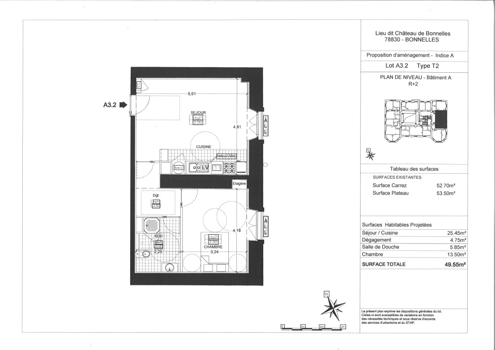 L'agence ALPHA IMMO vous propose à la location, au Château de BONNELLES (restauration totale), dans résidence de haut de standing, cet appartement de 49,55 m2. Ce T2 au 2ème étage, offre une entrée sur un séjour de 25,45m2, ouvert sur cuisine aménagée et équipée (plaque, hotte, four, réfrigérateur); une salle d'eau avec WC; une chambre de 13,50m2. Vous pourrez également profiter d'un stationnement privatif dans l'enceinte du parc. Libre 8 avril 2026. Honoraires locataire : 545€ dont 148€ pour l'état des lieux - Loyer : 864€ (dont 97€ de charges pour l'eau froide - l'entretien et l'éclairage des parties communes - l'entretien des espaces verts) - Dépôt de garantie : 766.60€