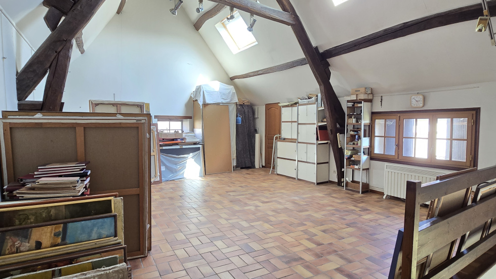 A PECQUEUSE, commune avec écoles proche LIMOURS, au calme et sans vis à vis, ancien atelier d’artiste de 290m² sur 800m² de terrain clos de murs qui comporte une grange de 75m² au sol et une maison d'amis de 80m² hors cellier et débarras. La maison principale beneficie au rdc d'une entrée - un bureau - une grande cuisine de 28m² avec cheminée - buanderie et cellier. A l'étage desservit par 2 escaliers vous trouverez d'un coté le salon de 50m² avec poutres apparentes et hauteur cathédrale et de l'autre deux chambres de 17 et 30m² - une salle d'eau et un WC. Au 2ème , grande chambre mansardée de 27m² au sol. La maison d'amis se compose au rdc d'une partie cave - cuisine et atelier. A l'étage, on y trouve la pièce de vie de 48m² , une chambre, une mezzanine et une salle d'eau. Ces deux maisons communiquent entre elles La grange de 75m² au sol bénéficie d'une hauteur de 6.5m BEAUCOUP DE POSSIBILITES - TOITURE RECENTE - A VISITER - RARE