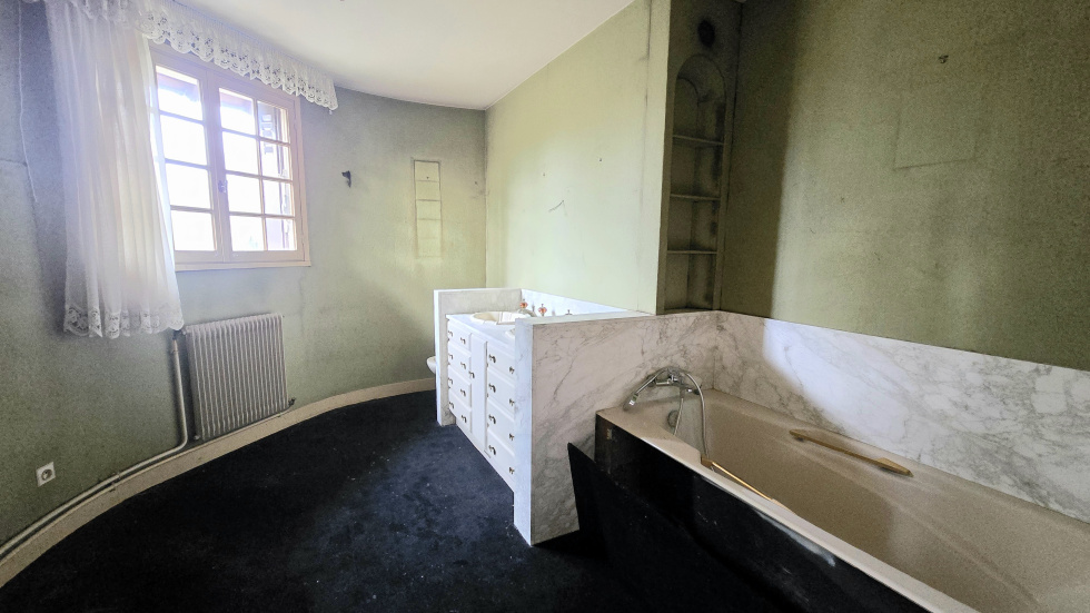 NOUVEAUTE : Au calme, proche du centre ville, maison traditionnelle édifiée sur cave totale et sur 2500m² de terrain arboré, Elle offre des volumes exceptionnels et un double accès sur rue. Grand hall d'entrée de 20m² - doublé séjour de 40m² avec cheminée et accès terrasse -salle à manger de 20m² - cuisine séparée de 19m² et une chambre au rdc de 12.10m² avec sdd attenante. A l'étage : belle mezzanine - suite parentale de 35m² avec chambre avec balcon / dressin / salle de bains - une autre chambre et un WC. En annexe : une cave totale avec une pièce bureau et une salle d'eau - Un garage non attenant avec grenier au dessus - 2 terrasses - 2 balcons - terrain arboré MAISON EST A MODERNISER - TRAVAUX A PREVOIR (menuiseries / peintures / toutes les salles d'eau) A VISITER