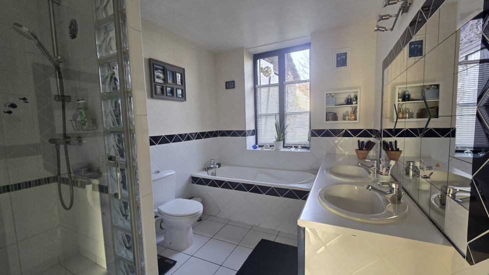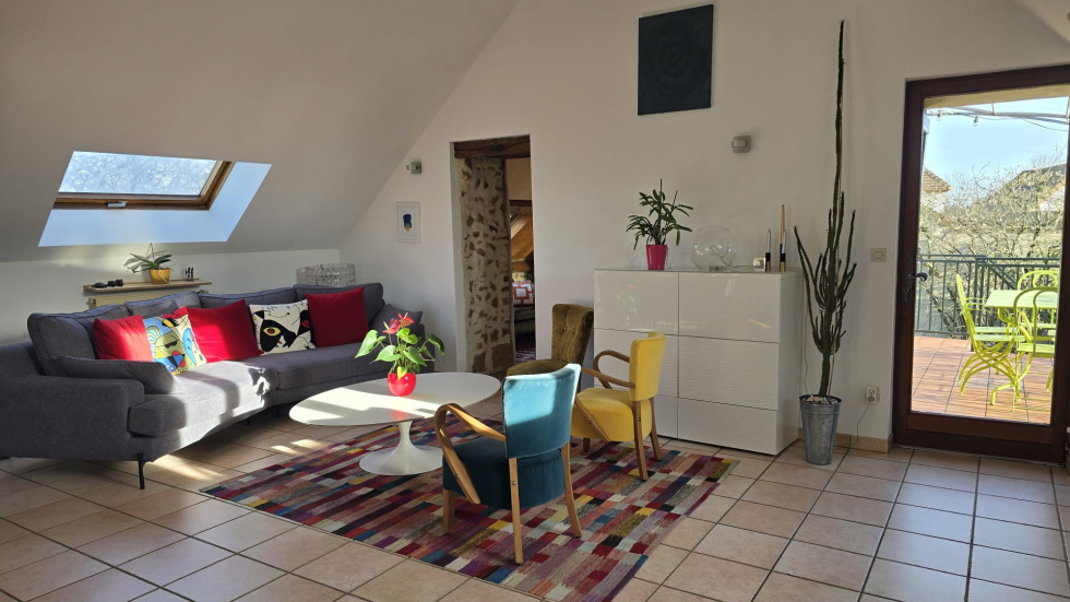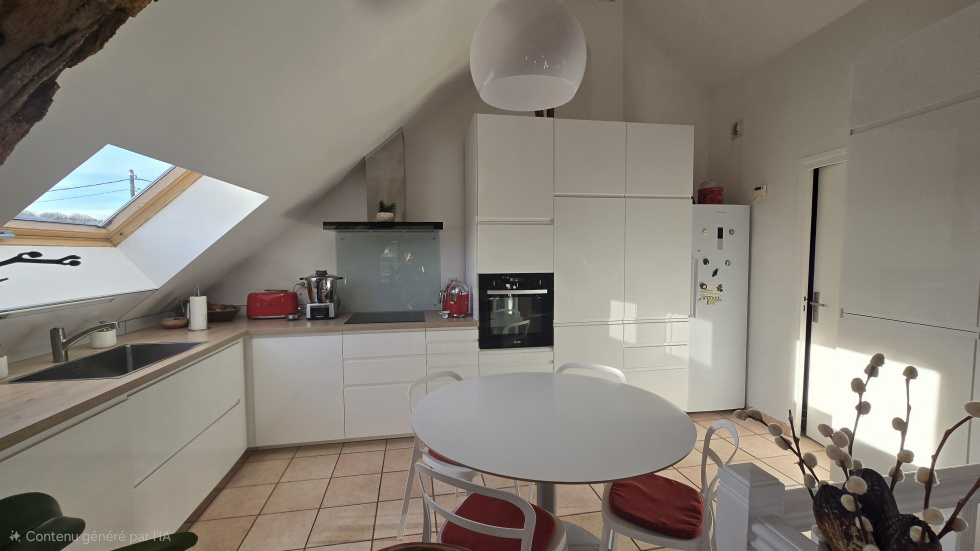 NOUVEAUTE : BULLION, dans environnement calme, cette maison ancienne pleine de charme et renovée offre une configuration atypique et très agréable. Au rez de jardin, vous trouverez 4 belles chambres dont 2 avec accès au jardin - une grande salle de bains avec WC et des rangements. A l'étage , une pièce de vie spacieuse avec belle hauteur sous plafond et charpente apparente, un salon chaleureux avec accès terrasse, une salle à manger conviviale, une cuisine entierement équipée ouverte, une buanderie et un petit salon TV ou bureau. A l'exterieur, vous profiterez d'un jardin entierement clos avec appentis, de quoi garer 2 voitures devant la maison et 1 moto sous un car-port. COUP DE COEUR ASSURE - une visite s'impose.