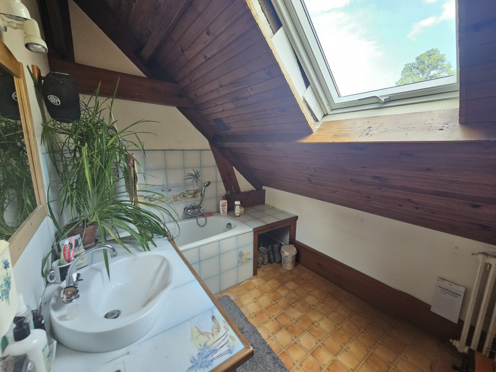 Maison en L de 1980 construction brique.110m² hab 130m² utiles. Edifiée sur 386m² de terrain. Elle dispose d'un séjour de 31m² avec cheminée. Cuisine de 16m². Bureau. Chambre avec salle d'eau. A l'étage un palier dessert 2 chambres. Salle de bains . Bureau. WC . Travaux de décorationn à prévoir Garage indépendant de 27m².