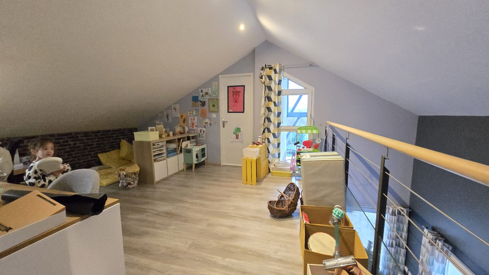 VAUGRIGNEUSE : Dans village avec bus et écoles, proche de la gare autoroutière. Dans impasse, Ancienne grange dans corps de ferme - entierèment restaurée - avec style contemporain - edifiée sur 375m² de terrain clos de murs avec piscine . Elle offre un hall d'entrée - Très beaux volumes de vie de 58m² avec salon accès terrasse et cuisine équipée ouverte sur salle à manger- chambre en rdc - buanderie / sdd et WC. A l'étage : belle mezzanine avec billard - 3 chambres - sdb - et espace grenier amenagé. Au 2ème : suite parentale de 33m² avec chambre - dressing et salle de bains avec WC et espace bureau ou petit salon En annexes : Petit Atelier independant. - jardin clos de murs avec piscine enterrée de 10m² - terrasse en partie couverte Aucun vis a vis - au calme - belles prestations et Possibilité d'acheter 350m² de terrain supplementaire.~ FAIRE VITE