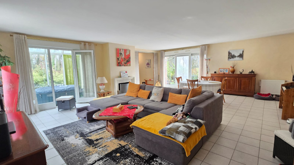 EXCLUSIVITE : A FORGES LES BAINS, en fond d'impasse, venez visiter cette maison de 170m² qui vous séduira par ses volumes. Elle offre un grand hall d'entrée - une pièce de vie de 50m² avec cheminée - un bureau - une cuisine équipée avec arrière cuisine - un jardin d'hiver idéal pour un spa et un double garage de 33m². A l'étage, le palier dessert une suite parentale de 37m² au sol (26m² hab.) composée d'une chambre - dressing et salle d'eau - 3 autres chambres dont une avec bureau/dressing - salle de bains et WC. Ses atouts : beaux volumes et belle distribution - en très bon état général - jardin paysagé et arboré avec piscine hors sol - belle terrasse avec store banne - 2 places de stationnement devant. A VISITER