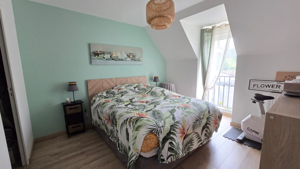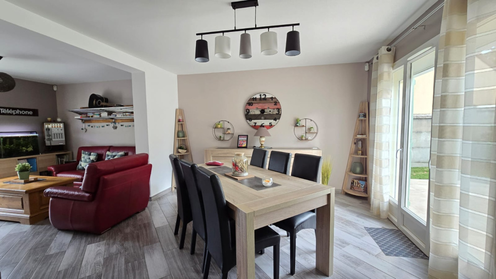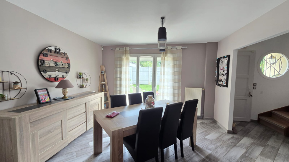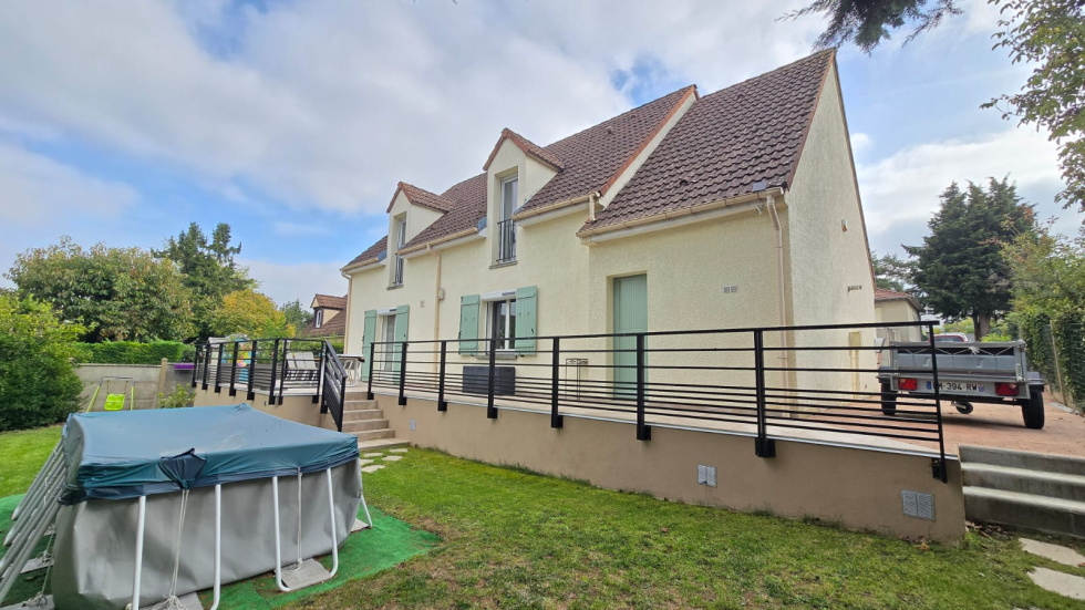 EXCLUSIVITE : A ARPAJON, au pied de la gare sans les nuisances, proche du centre ville, maison individuelle 6 PIECES edifiée sur vide sanitaire. Elle offre une entrée avec placard - salon/salle à manger - cuisine de 14m² avec espace repas - cellier - chambre avec sdd et WC. A l'étage : palier qui dessert 3 chambres dont 1 avec dressing - buanderie/lingerie - salle de bains et WC. Garage avec atelier - grenier isolé de 12m² (poss. chambre supplémentaire) - vide sanitaire - jardin avec 2 belles terrasses. Impeccable d’état. LUMINEUSE - AU CALME - DPE D - Nombreux travaux réalisés (PVC DV / volets roulants solaires / terrasses / allée pavée / ioslation des combles ...) A VISITER