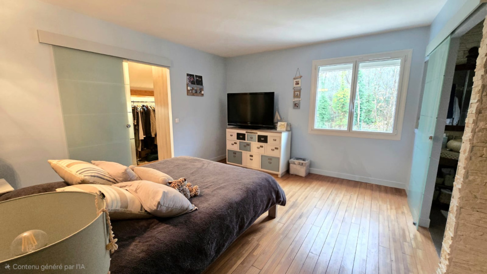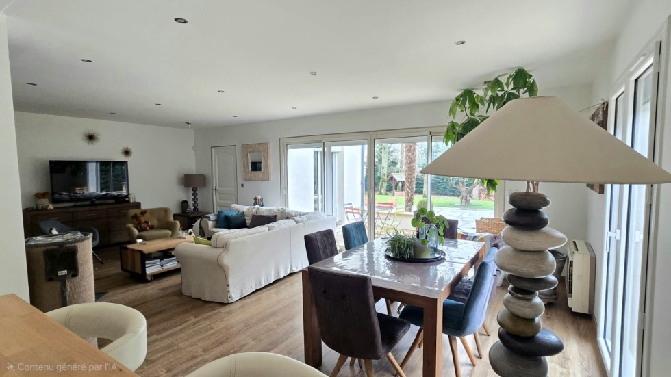 NOUVEAUTE : A FORGES LES BAINS, dans un environnement de qualité, venez découvrir cette maison cossue de 206m² hab / 230m² au sol + cave totale de 100m² atypique dans sa distribution Elle offre une entrée avec espace bureau - bel espace de vie traversant avec accès terrasse - cuisine équipée US - 1 chambre avec salle d'eau attenante et WC. Au 1er demi niveau, 1 chambre mansardée avec dressing - au 2ème demi niveau : grand dégagement avec dressing et nombreux placards - 3 grandes chambres avec chacune leur salle d'eau ou bains et dressing - WC. Ses annexes : un garage de 31.50m² - une cave totale amenagée en 2 espaces de 30m² (billard et salle de jeux) - un dressing - un cellier - une piece de rangement et une salle d'eau idéale pour un sauna/hammam - aire de stationnement pour nombreux véhicules - Ses atouts : son environnement - sa distribution atypique - son jardin arboré avec piscine de 50m² chauffée et terrain de petanque - A VISITER