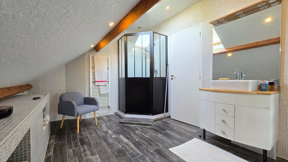 EXCLUSIVITE : BOULLAY LES TROUX, coté MOLIERES, à 4.5km de la gare de SAINT REMY LES CHEVREUSE, belle et garnde maison de PLAIN-PIED offrant une entrée - beau salon / salle à manger hyper lumineux - cuisine équipée récente de 17m² - 3 grandes chambres dont 2 avec salle d'eau privative et chacune avec placard - sdb - WC et nombreux rangements. A l'étage, vaste espace avec charpente apparente - un bureau - une chambre avec placard et sa salle d'eau et WC. En annexes : SOUS-SOL TOTAL de 155m² composé d'un garage de 40m² - 2 ateliers de 30m² eclairés avec fenetre - buanderie - chaufferie et divers espaces - Terrain arboré avec 2 terrasses ensoleillées - car port - stationnement VOLUMES GENEREUX - BELLE DISTRIBUTION - TRES BELLE LUMINOSITE - CALME ABSOLU RARE - A VISITER -