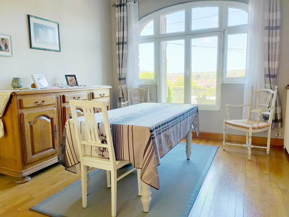 Maison 1935 en pierre meulière avec une vue dégagée sur la vallée. Elle comprend au rez de chaussée: Entée. Séjour double avec accès à la véranda de 25m². Cuisine aménagée. Salle d'eau. WC indépendant. cellier.