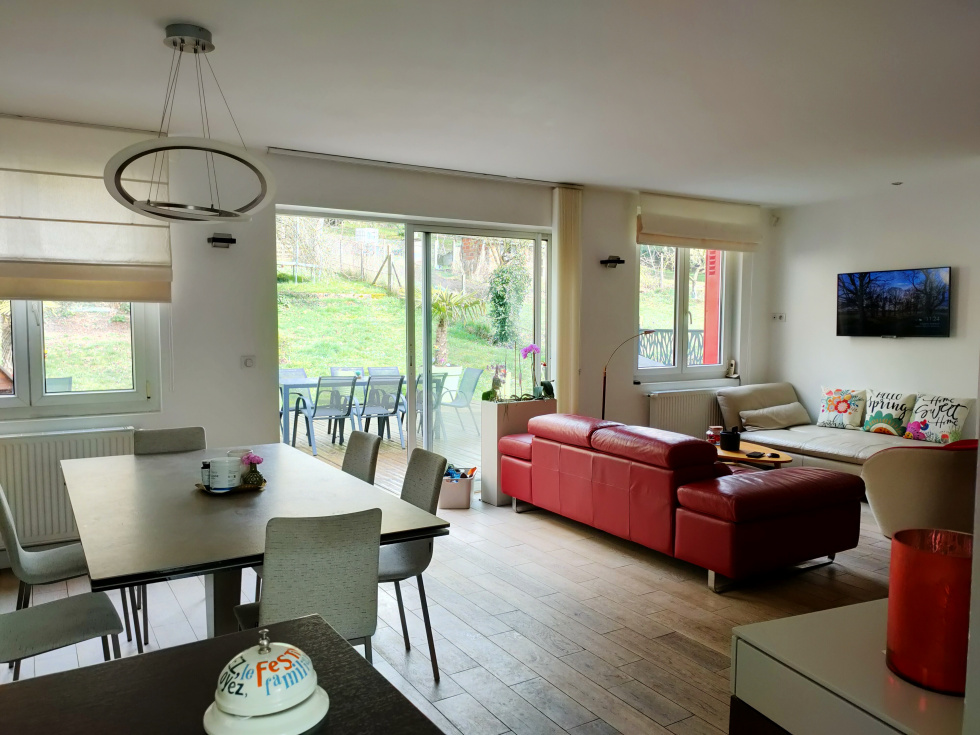 NOUVEAUTE / EXCLUSIVITE : Ravissante maison des années 50 entièrement rénovée. Elle offre 92m2 hab et 122m2 au sol sur un terrain de 810m². Elle se compose d'une entrée avec placard, un double séjour de 30m2 avec accès à une terrasse bois de 56m² et jardin clos. Cuisine équipée ouverte . Chambre avec salle d'eau attenante. wc. A l'étage 2 chambres mansardées . Salle d'eau et wc. En rez de jardin 1 Chambre. Buanderie. Dressing. Chaufferie. Garage à motos. Jardin de 810m² . RARE . A visiter rapidement